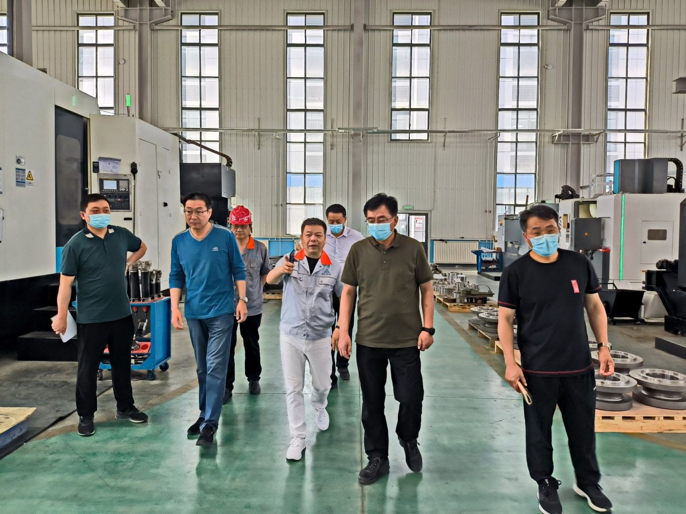 5月28日上午,青岛西海岸交通商务区工委书记管绍波一行来到jinnianhui今年会流体控制有限公司检查指导工作,管绍波书记深入公司生产车间、办公楼、员工公寓、食堂等场所,详细了解企业生产经营、疫情防控和员工生活等各方面情况。